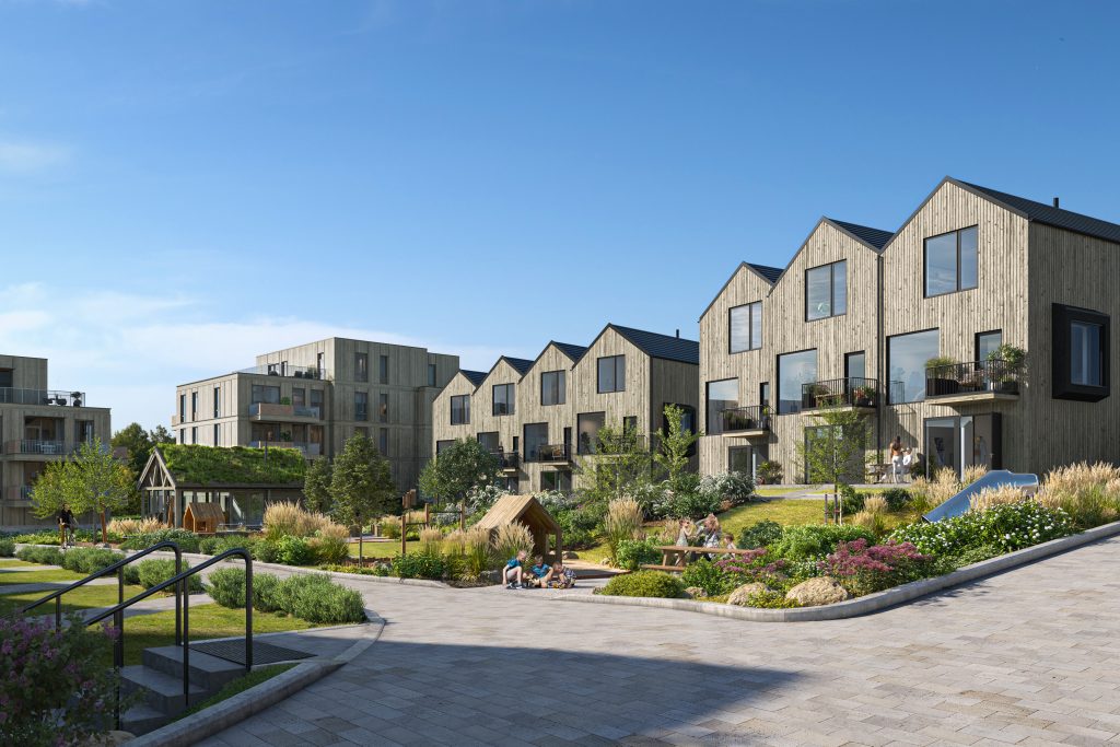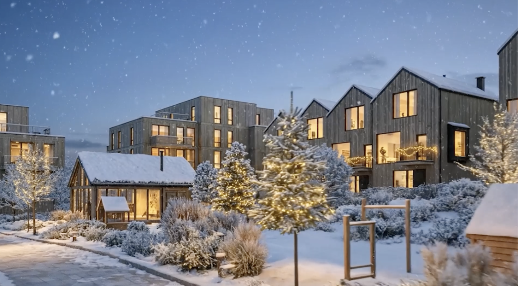 Dette huset planlegges med kjøkkenfasiliteter, sittegrupper og mer, slik at kommende beboere kan samles til strikkekvelder, julebakst eller vinsmaking. Her blir det mange muligheter!